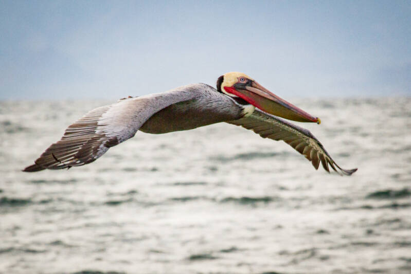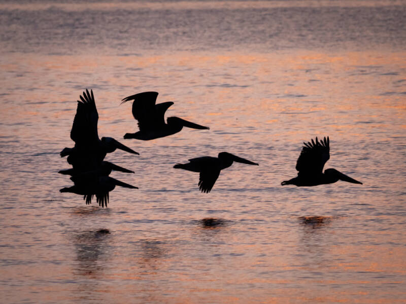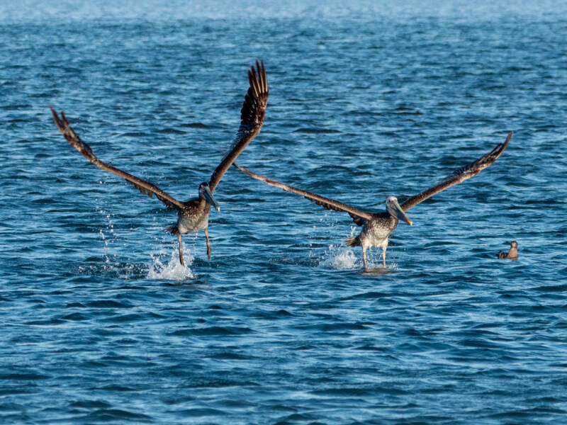 My favorite thing to observe with these birds is them flying in formation. They fly low, inches above the water, wings sometimes tapping the surface. Watching them navigate this distance over, around and along waves is quite fun.