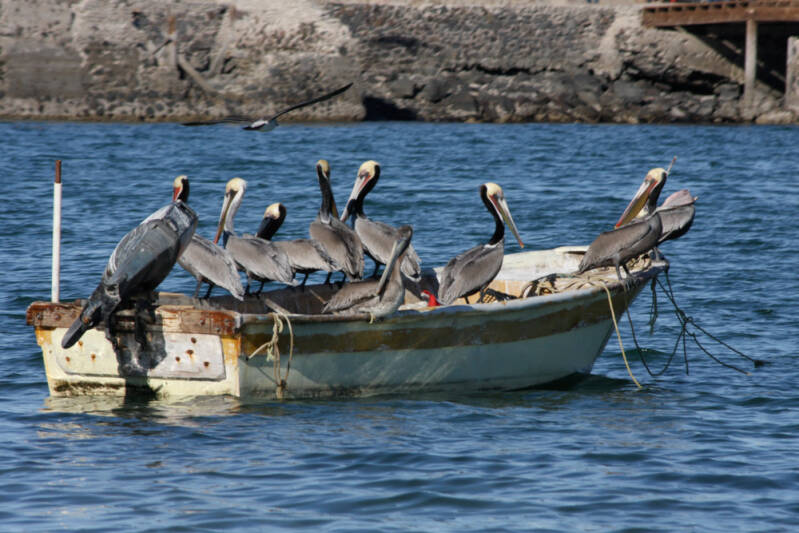 The bills, pouches, and bare facial skin of all pelicans become brightly coloured before the breeding season.