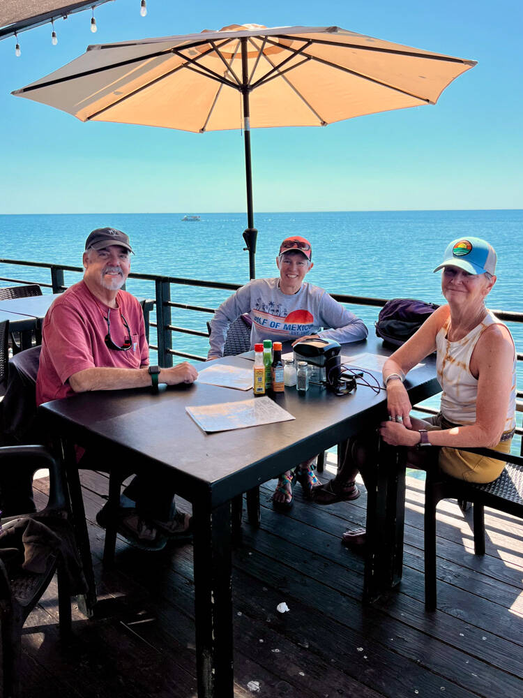To the right are three views from the back deck of the house we were staying in including a shrimp boat just beyond the beach.