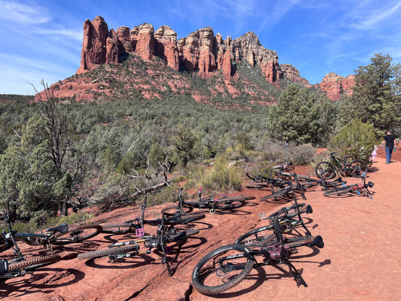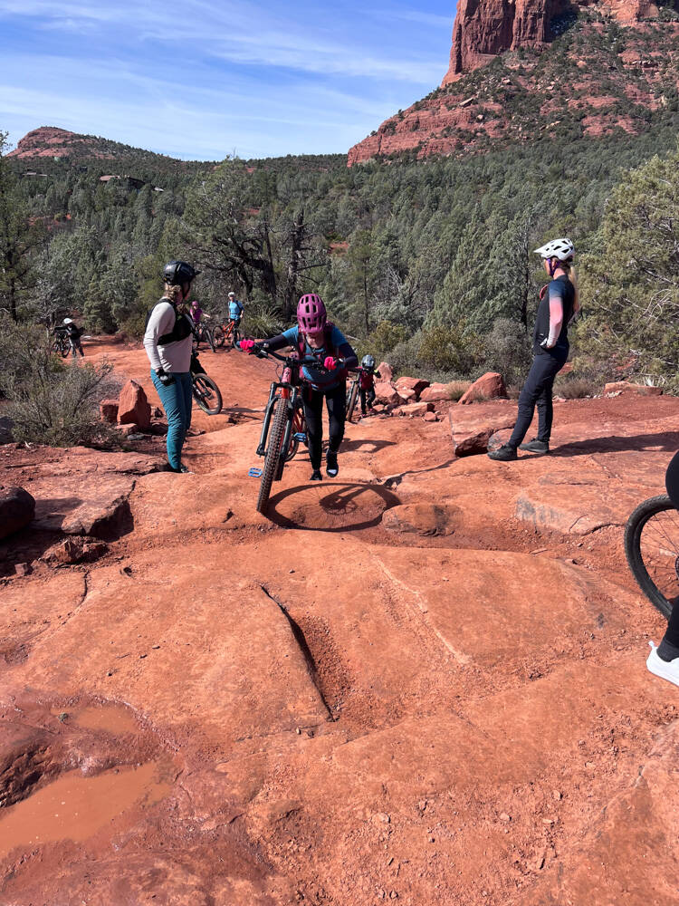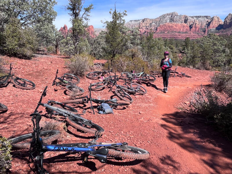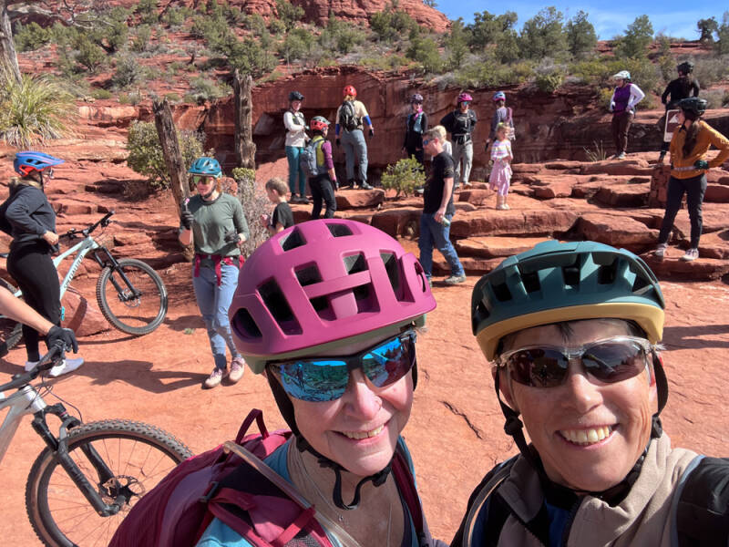 We drove back to Sedona early Sunday morning to make our 10:00 am women's ride. All the trails were open, the sun was out, the snow was gone and the Festival was in FULL swing. We did a two-hour, four-mile ride on Adobe Jack Trail with 17 other ladies and a leader that is BAD ASS. There is truly no other way to put it. Check her out on YouTube. Type in Jill Kintner. I'd add a hot link but this blog version doesn't allow it. ;) It took so long to ride because, as you can see, we would stop and session some spots and work on technique. Such a great day. we'll be back next year for sure.