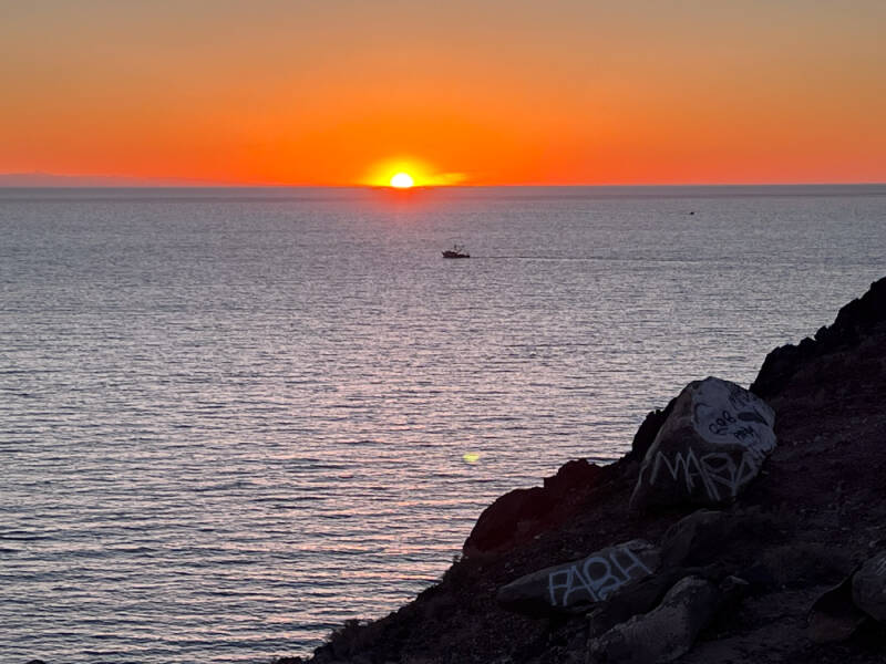 To finish up March we went to Mexico with a couple of dear freinds that own a house in Puerto Penasco, Sonora, seven hours from our front door. Our first night there, the four of us walked up a nearby hill to a never-finished hotel and restaurant with lots of graffiti. The sunset was beautiful.
