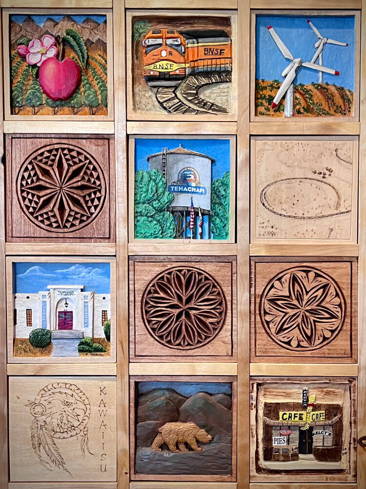 The above image was in a local cafe where we had breakfast. It is a collection of carivngs made by a carving group in Tehachapi.